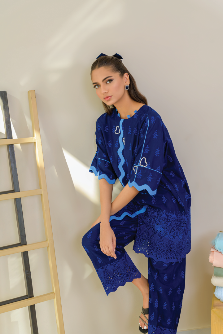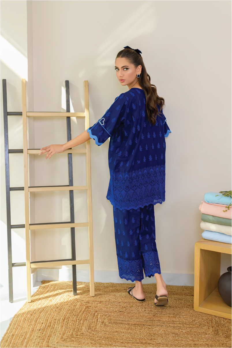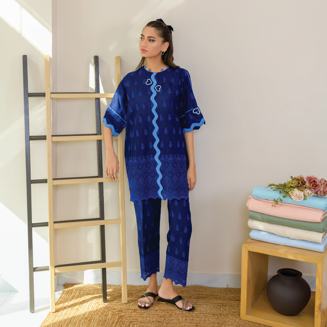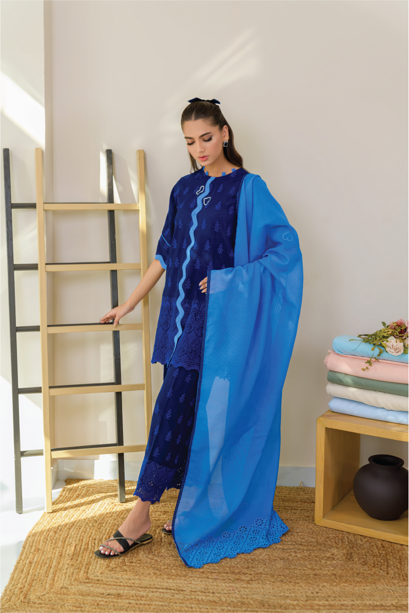Designed from Cotton-Lawn chicken, the ensemble features elegant stone and scallop work on the front. Its lightweight and airy design make it perfect for an easy, breezy summer look.